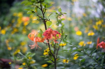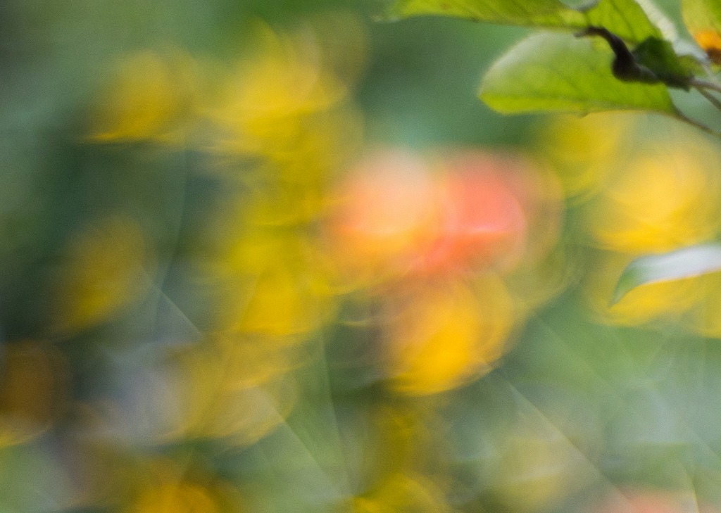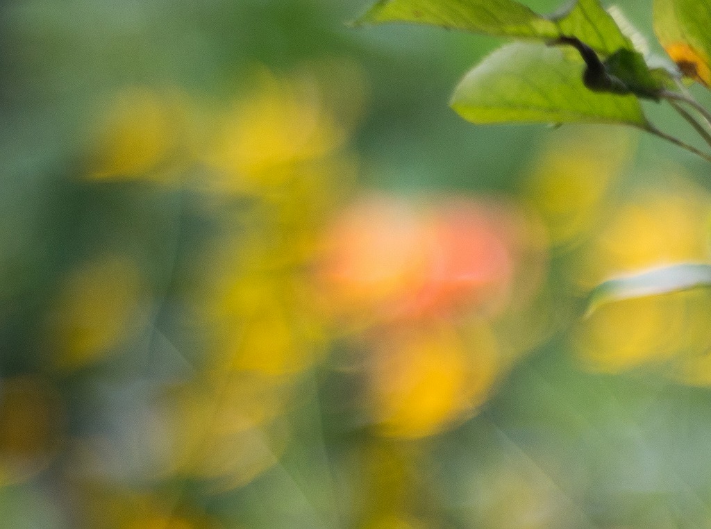 ボケ : @フレアに隠れて見えにくいですが、周辺部のボケには球面補正による2線ボケがやや強く出ています。 これは4枚目の木漏れ日のボケでわかりやすいと思います。