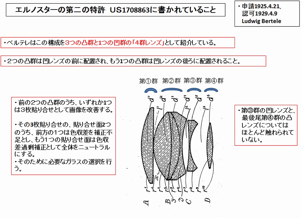 (おそらく、貼り合わせのない4群4枚のエルノスターとの比較であえて述べているように思われます。)