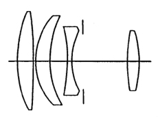 最前部と最後部に集光の凸レンズを配し、第二群は凹レンズと凸レンズの貼り合わせで、